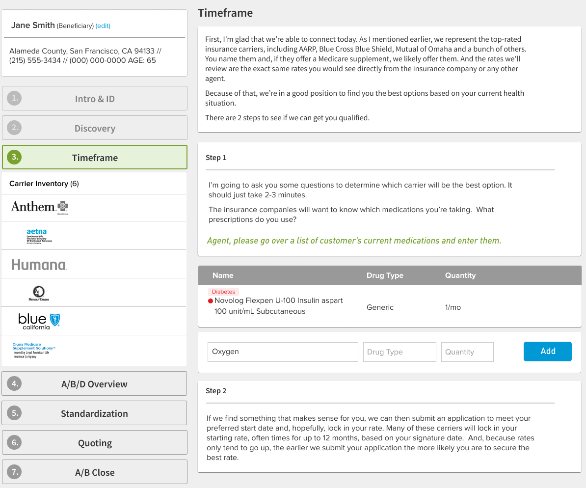 As a company we wanted to enter into the Medicare Supplement marketplace. Part of that was through the acquisition of GoMedigap. After that acquisition we sought to incorporate their sales process within our tools, to capture and uncover that process along with my Product Manager at the time led a 2 day workshop to capture the selling process, as well as ideate on tools we could develop to improve that process.